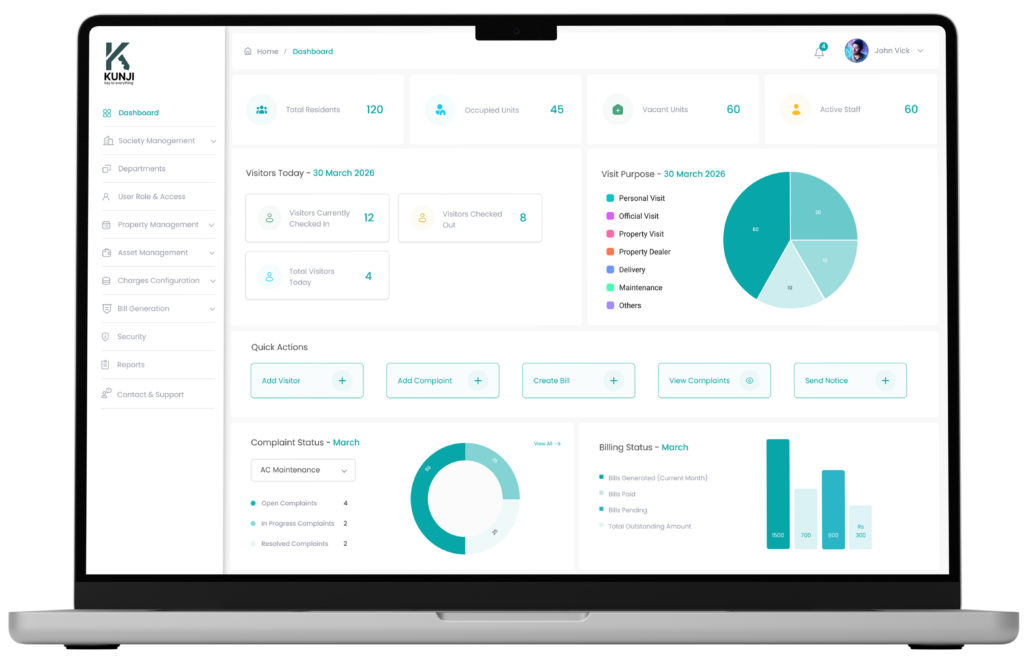 KUNJI — Where Communities Go Digital. Seamlessly connecting Residents, Management, and Security for smarter operations and next-level safety.